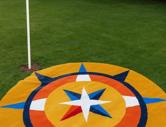 Designer Turf for Commercial & Creative Spaces - Custom Designed Artificial Grass Logos Games & Fitness Tracks - Grassart